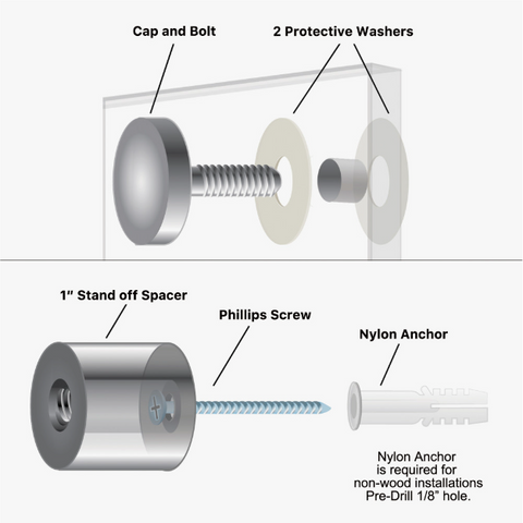 - 1 inch Chrome Finished Standoff Hardware + Mounting Screws